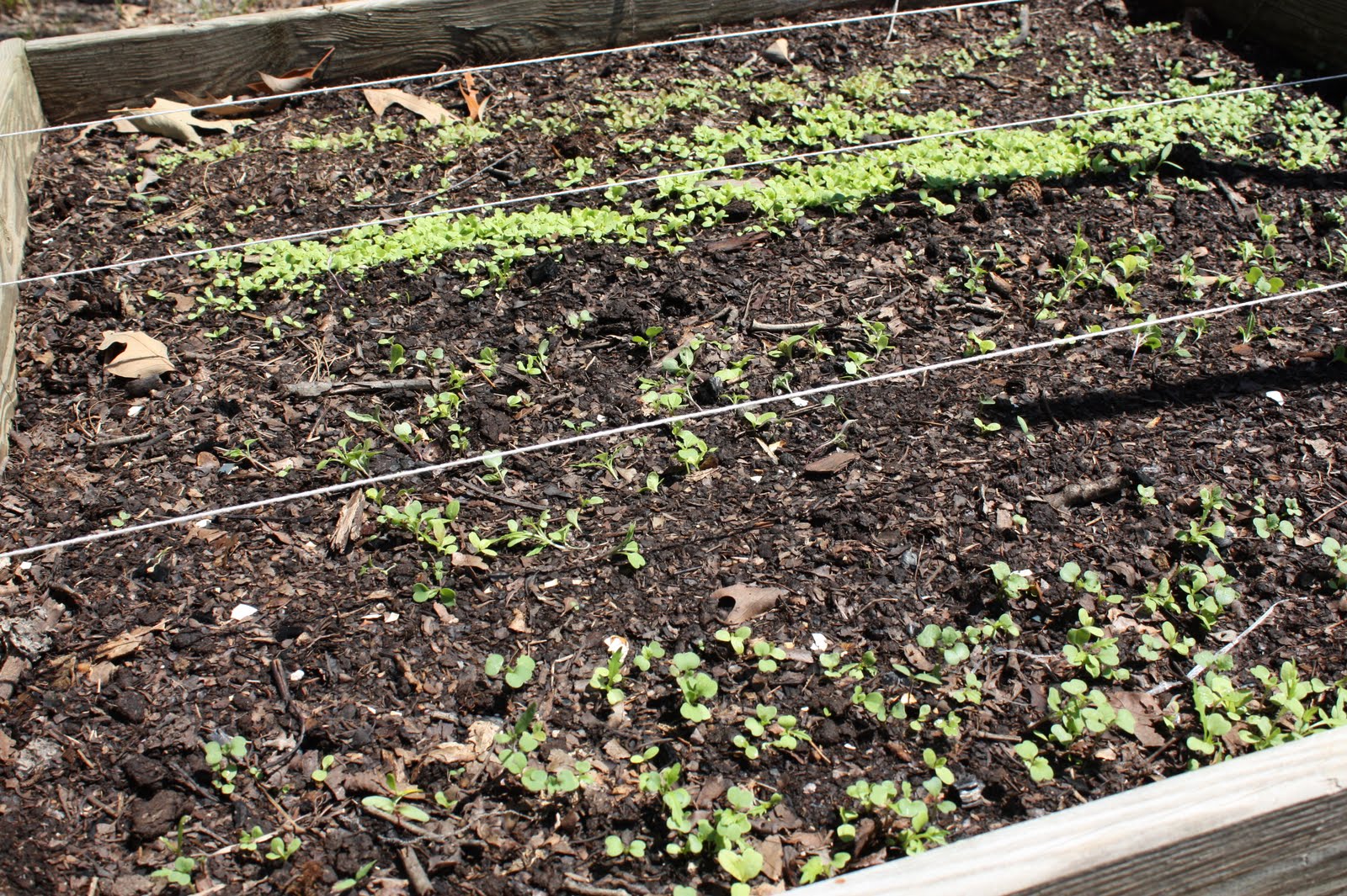 Here, Caedmon is trying to catch a chicken. I think he probably delayed the laying of the first eggs by chasing them around the tree.