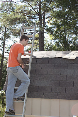 Jordan putting on the shingles. I think the older boys did all the shingle work themselves.